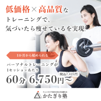 ![]() ![]() | 手ぶらで通える! 人目を気にしないプライベートジム! | 55,000円 ※特典あります! | (月8プランの場合) 1回当たり7,425円 合計59,400円 | 体験トレーニング後割引き有り(税込22000円〜) ※体験トレーニングは原則おひとり様1回となりますが、場合によっては2回目以降の体験トレーニングを受け付ける場合がございます。2回目以降の体験トレーニングをご希望のお客様はサポートメール(support@caname.co.jp)へ問い合わせ下さい。 | 福島~兵庫 200店舗以上 | 〇 |
